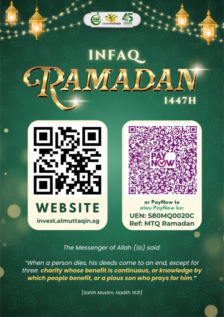 Masjid Al-Muttaqin ingin menjemput anda untuk menaja perbelanjaan program-program kami melalui lelaman invest.almuttaqin.sg.